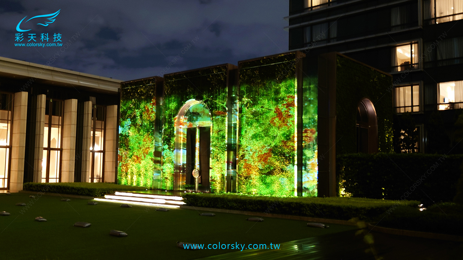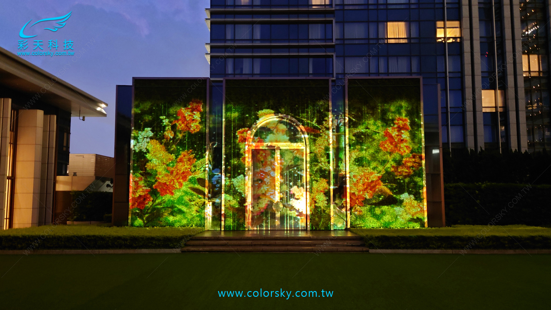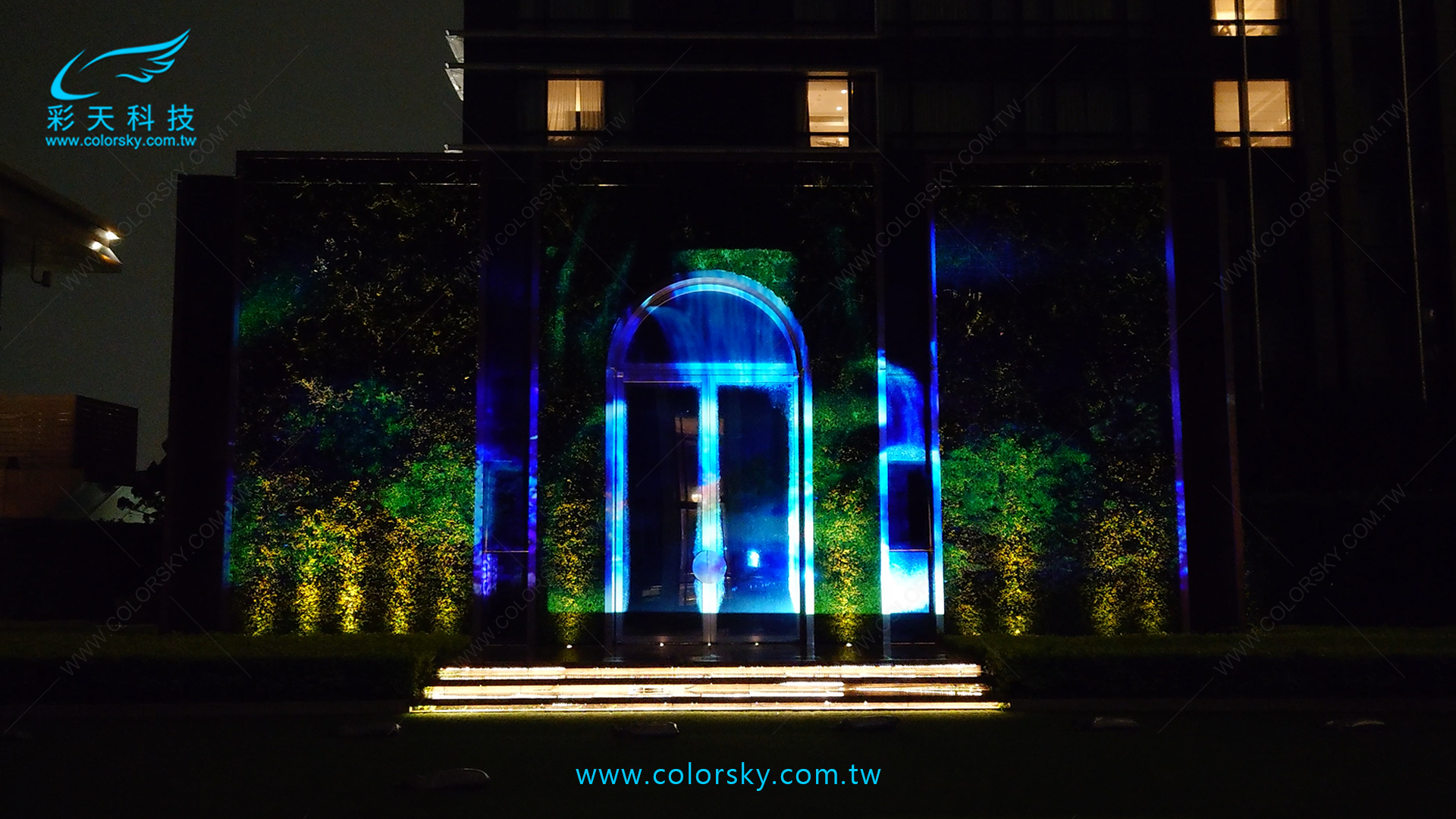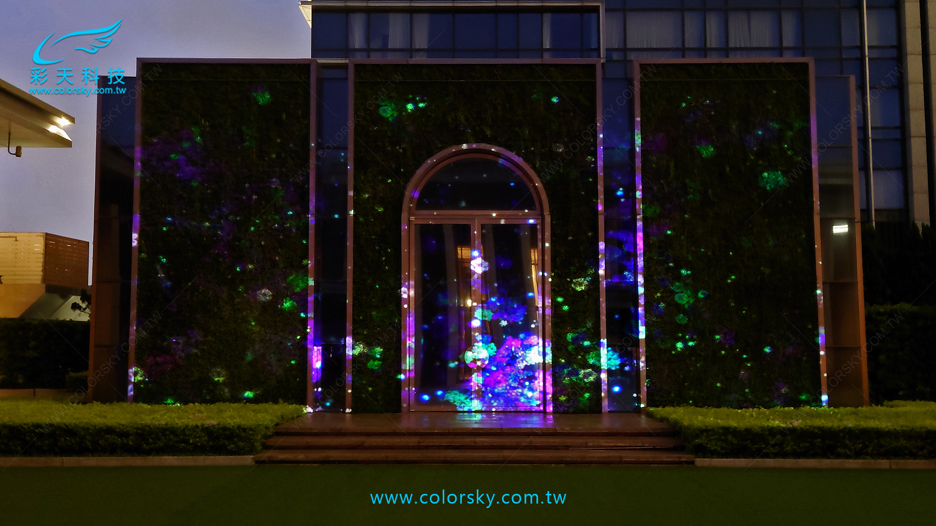 於台北萬豪酒店 8 樓 Garden Villa 歐式禮堂建築立面打造婚禮專屬光雕投影,透過精準投影校正與動態影像演繹,將禮堂外觀轉化為沉浸式浪漫場景。整體視覺隨情境流轉,營造層次豐富的夢幻婚禮氛圍,讓新人與賓客共同沉浸於兼具視覺震撼與情感溫度的難忘體驗。